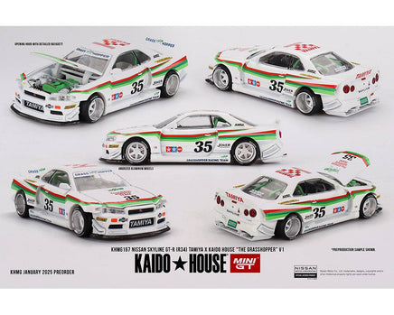 Kaido House x Mini GT 1:64 Nissan Skyline GT-R (R34) Tamiya X Kaido House “The Grasshopper” V1 – White